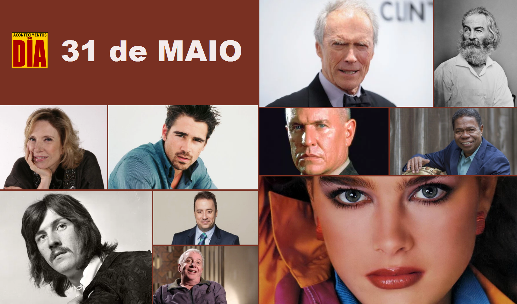 ☺ DESTAQUES DE HOJE ▒ NASCIMENTOS • Walt Whitman • Clint Eastwood • John Bonham • Marco Nanini • Marília Gabriela • Paulinho da Costa • Tom Berenger • Brooke Shields • Colin Farrell ▒ FALECIMENTOS • Maurício Torres