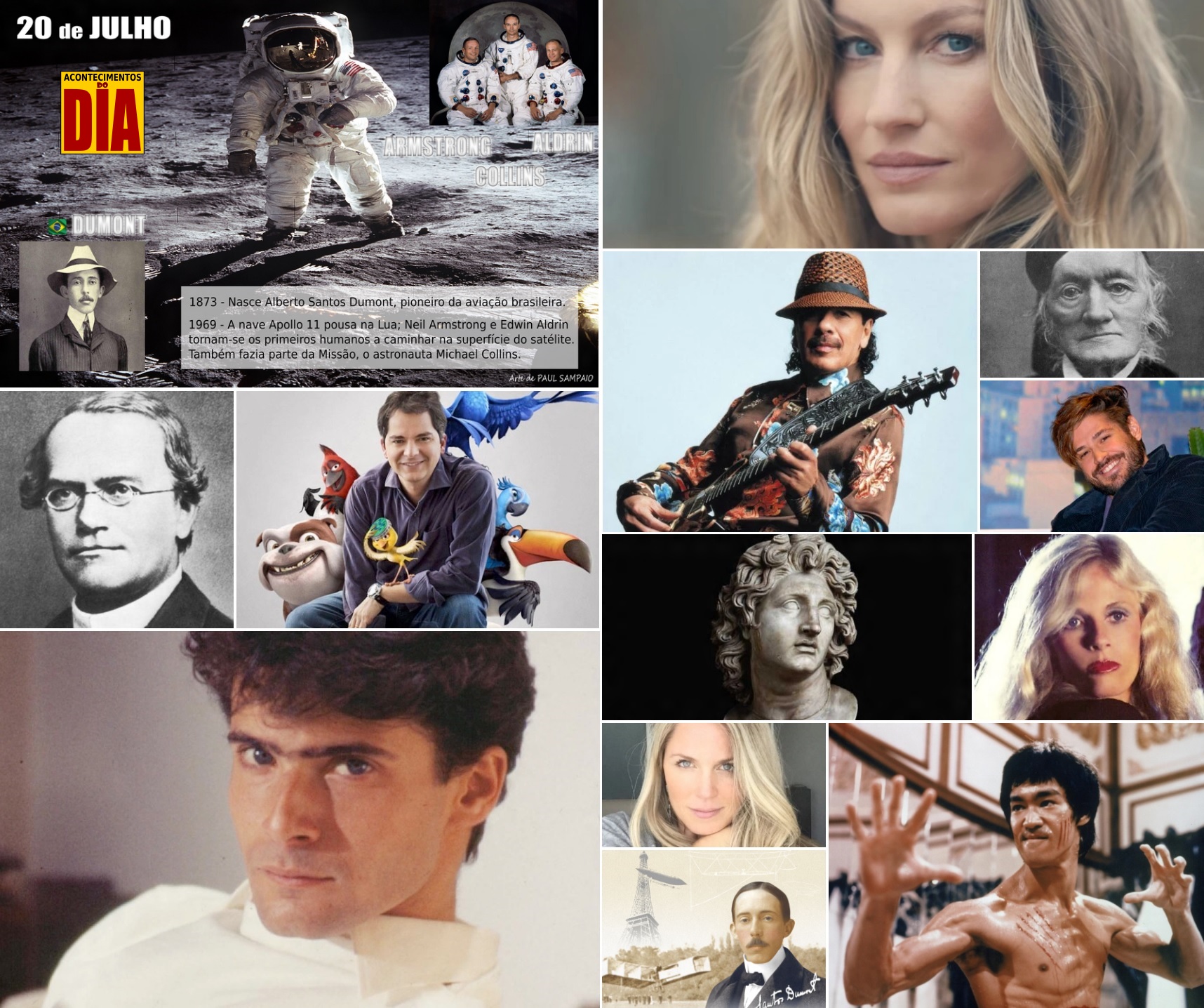 ☺ DESTAQUES DE HOJE • Dia em que o Homem pisou na Lua ▒ NASCIMENTOS • Alexandre, o Grande • Richard Owen • Gregor Mendel • Santos Dumont • Kim Carnes • Carlos Santana • Carlos Saldanha • Susana Werner • Gisele Bündchen • Dado Dolabella ▒ FALECIMENTOS • Bruce Lee • Lauro Corona