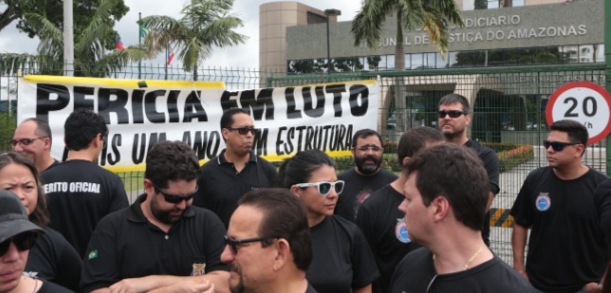 Os peritos se reuniram em frente ao Tribunal de Justiça do Amazonas (TJAM), na Zona Centro-Sul de Manaus, onde a presidente do Superior Tribunal de Justiça (STJ), ministra Carmen Lúcia, se reúne com autoridades do Governo do Estado para discutir a situação do sistema prisional do país.