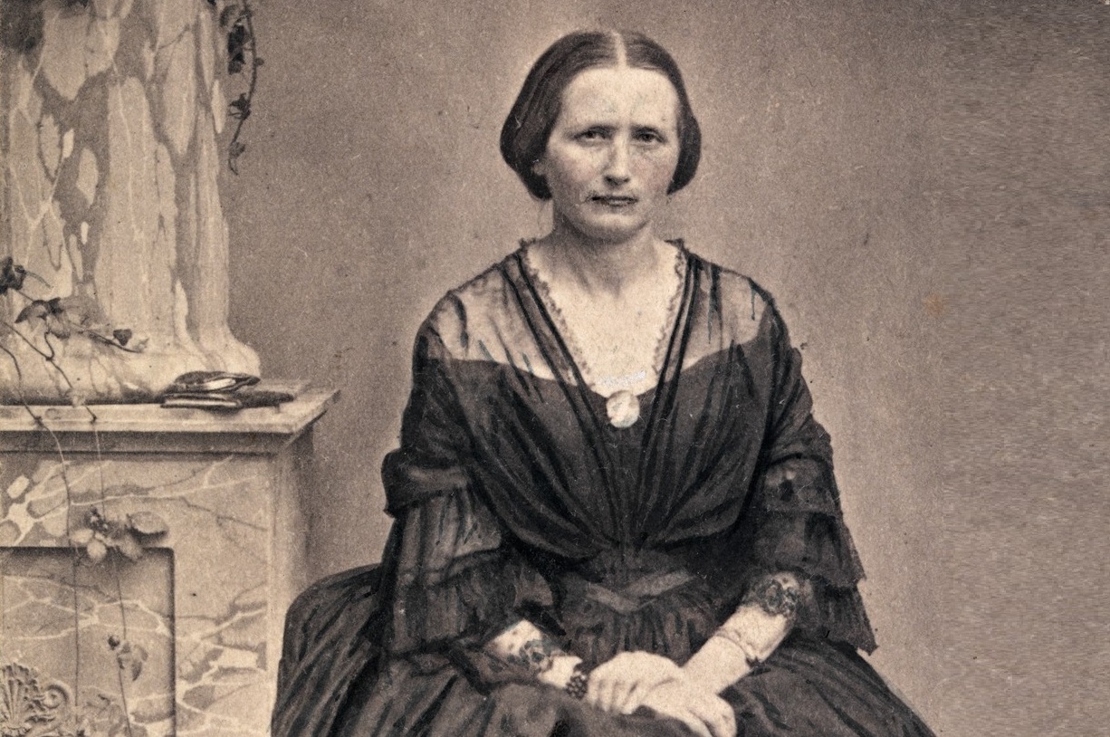 1813 — Camilla Collett ▒ Camilla Collett, (Kristiansand, Noruega, 23 de janeiro de 1813 — Kristiania, hoje Oslo, 6 de março de 1895) foi uma escritora norueguesa, geralmente descrita como a primeira norueguesa feminista. Era a irmã mais nova do poeta Henrik Wergeland, e é reconhecida como das primeiras autoras a contribuir para o realismo na literatura norueguesa.