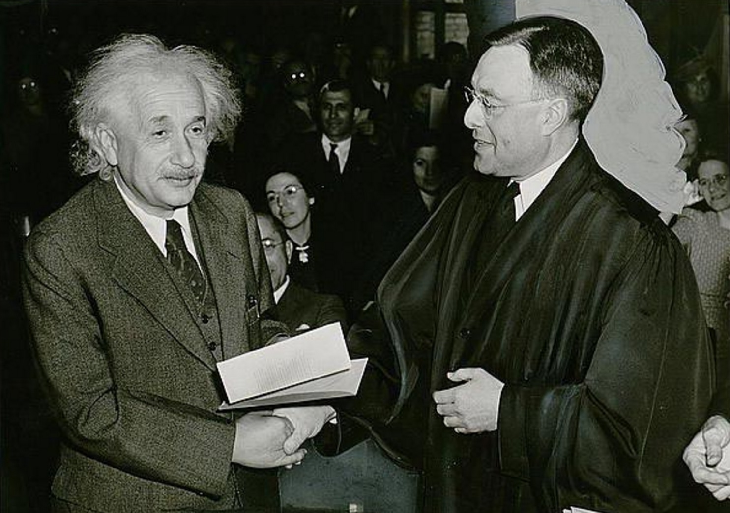 Albert Einstein nasceu em 1879, em território do Império Alemão, onde hoje fica o Estado de Baden-Württemberg. Antes de se mudar definitivamente para os Estados Unidos, em 1935, o físico, que também era judeu, já frequentava e morava na cidade americana de Princeton durante seis meses por ano, pois fazia parte do grupo de pesquisadores do Instituto de Estudos Avançados de Princeton.