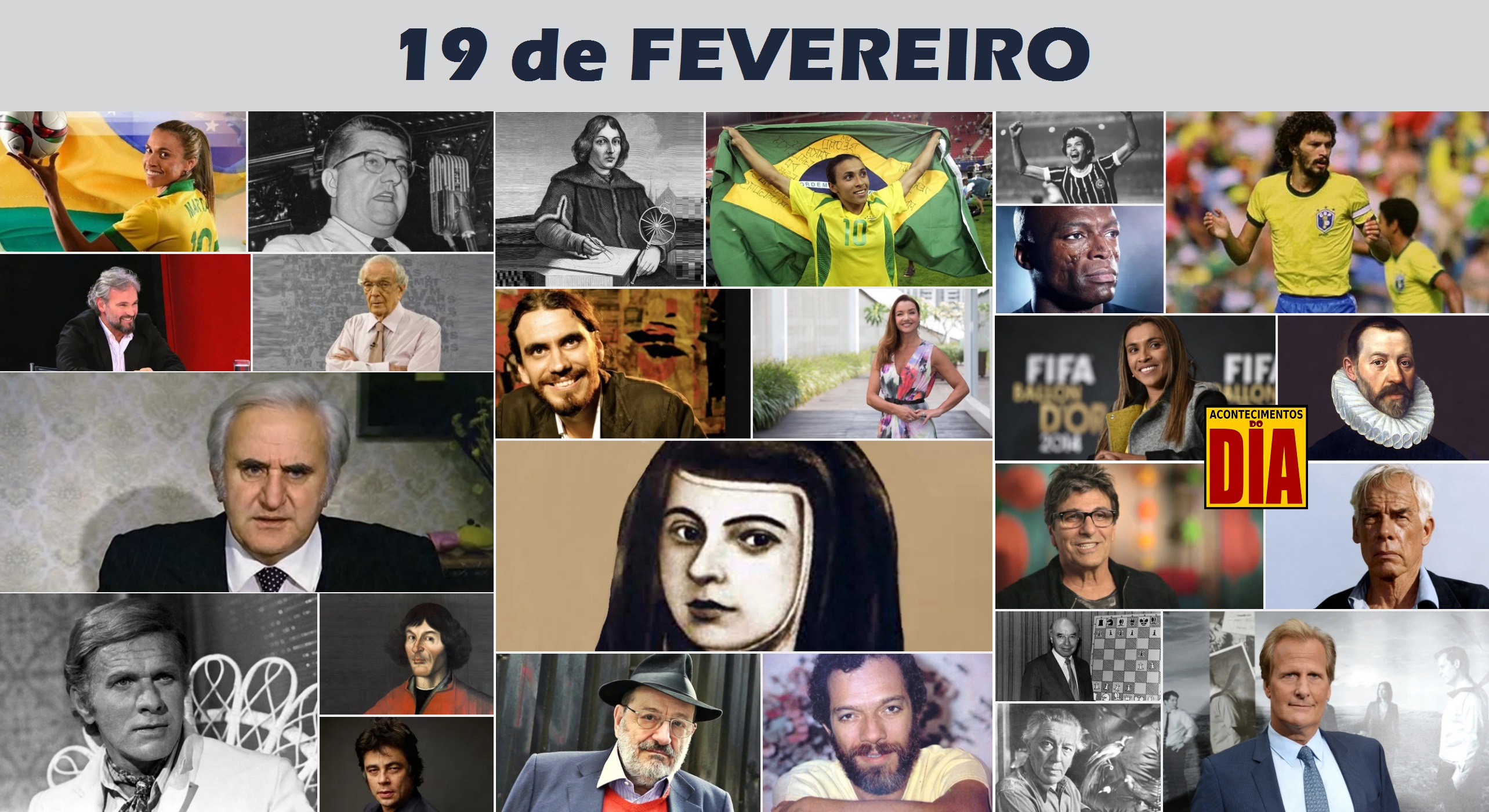 ☺ DESTAQUES DE HOJE ▒ NASCIMENTOS • Nicolau Copérnico • Carolus Clusius • André Breton • David Bronstein • Lee Marvin • Alberto Dines • Evandro Mesquita • Sócrates • Jeff Daniels • Seal • Benicio del Toro • Mateus Carrieri • Renata Cordeiro • Zéu Britto • Marta ▒ FALECIMENTOS • Joana Angélica • Afonso Arinos de Melo Franco • Jardel Filho • Adolfo Celi • Carlos Augusto Strazzer • Umberto Eco