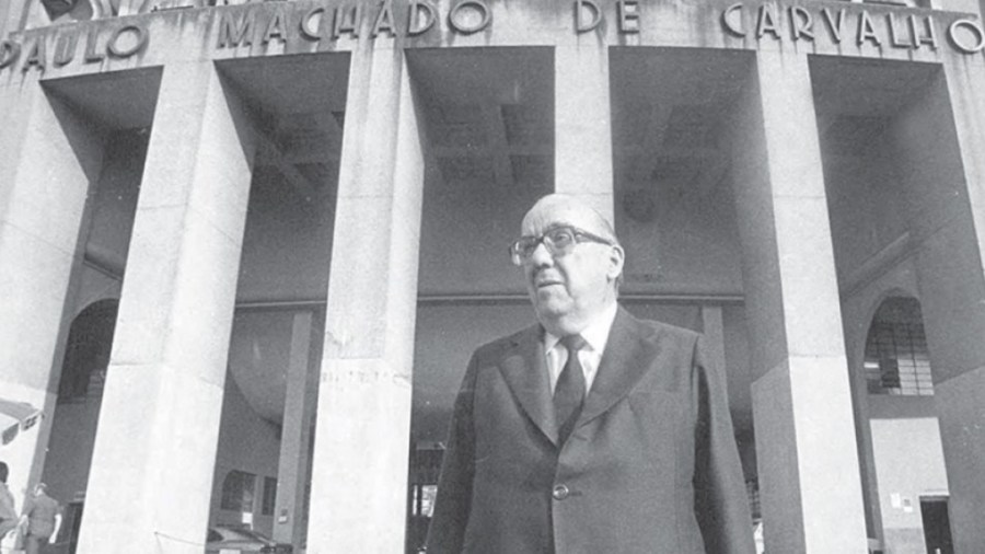 1992 — Paulo Machado de Carvalho ▒ Paulo Machado de Carvalho (São Paulo, 9 de novembro de 1901 — São Paulo, 7 de março de 1992) foi um advogado e empresário brasileiro. Conhecido nacionalmente com o título de Marechal da Vitória por ter sido o chefe da delegação brasileira em duas Copas do Mundo, é considerado o maior responsável “fora de campo” pelas conquistas das Copas do Mundo de 1958 e de 1962; por conta disso, o Estádio do Pacaembu, em São Paulo é batizado oficialmente de Estádio Municipal Paulo Machado de Carvalho em sua homenagem.