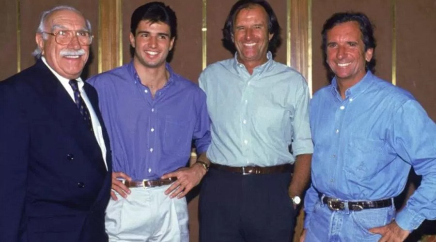 Wilson Fittipaldi, o Barão, com o neto Christian e os filhos Emerson e Wilson.