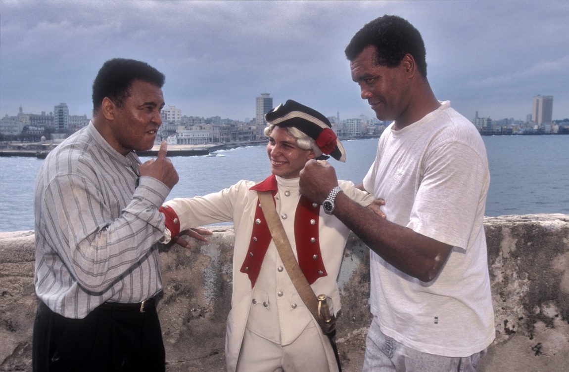 Mohamed Ali (à esquerda) e Teófilo Stevenson (à direita).