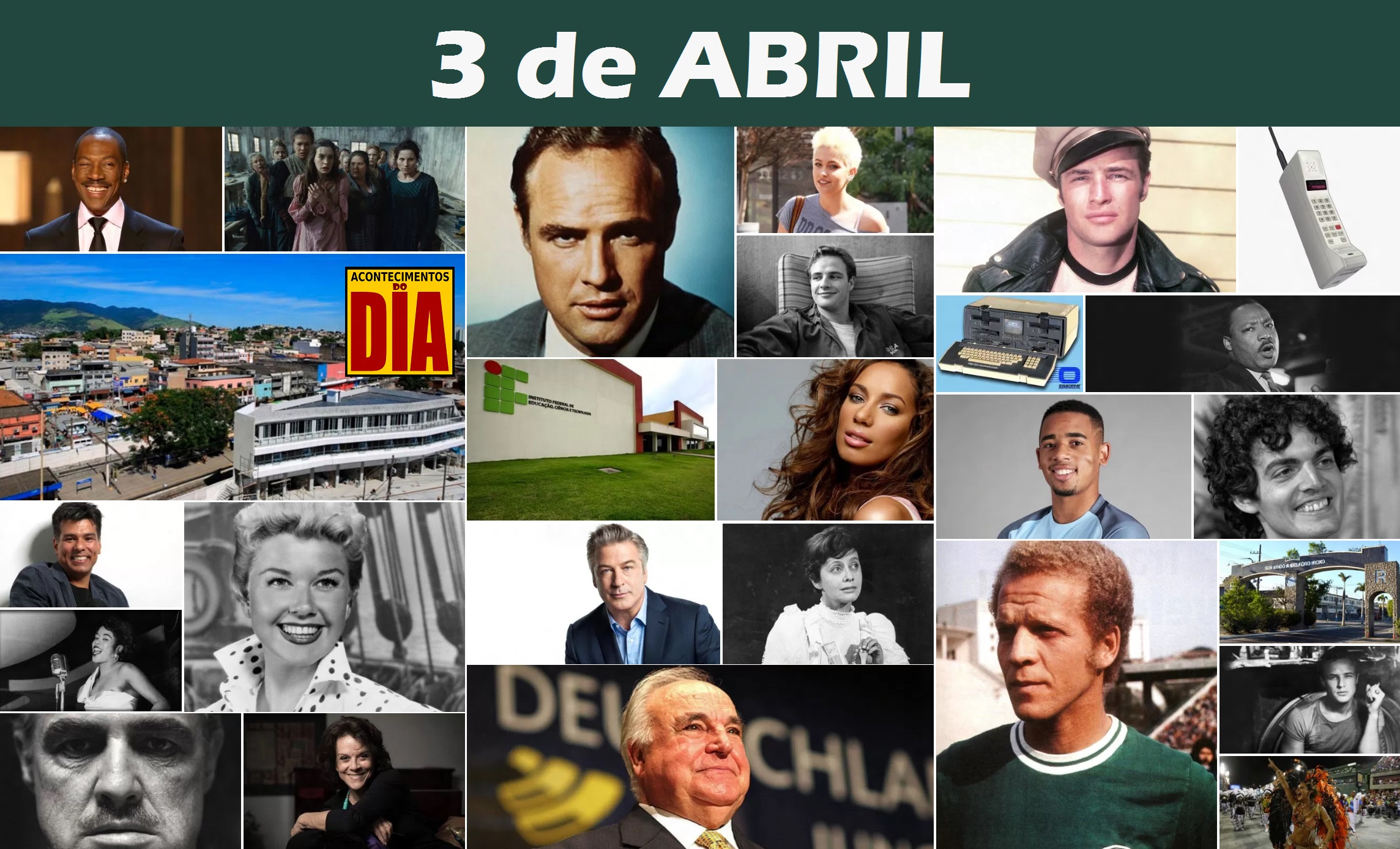 ☺ DESTAQUES DE HOJE ▒ CAPA • Marlon Brando ▒ NASCIMENTOS • Maria Clara Machado • Doris Day • Helmut Kohl • Ademir da Guia • Clarisse Abujamra • Alec Baldwin • Eddie Murphy • Maurício Mattar • Leona Lewis • Gabriel Jesus • Paris Jackson ▒ CIDADE • Belford Roxo (RJ) ▒ FALECIMENTOS • Sarah Vaughan • Buza Ferraz
