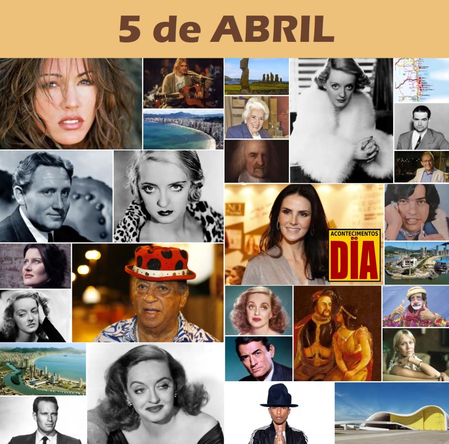 ☺ DESTAQUES DE HOJE ▒ CAPA • Bette Davis ▒ NASCIMENTOS • Thomas Hobbes • Spencer Tracy • Carmem Silva • Gregory Peck • Genival Lacerda • Agnetha Fältskog • Paula Cole • Krista Allen • Pharrell Williams • Lisandra Souto ▒ CIDADE • Camboriú (SC) ▒ FALECIMENTOS • Howard Hughes • Antônio Marcos • Kurt Cobain • Carequinha • Charlton Heston • José Wilker