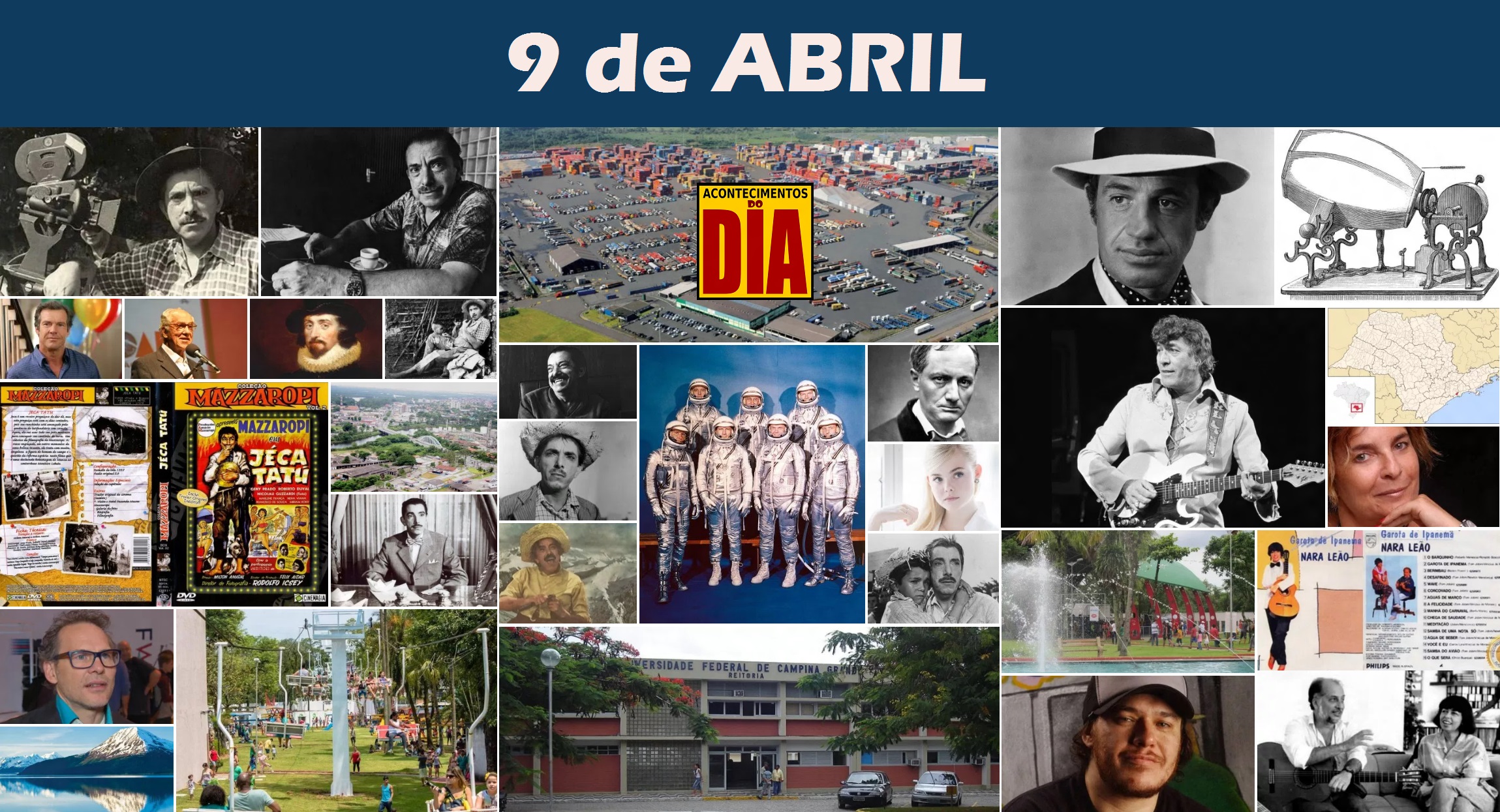 ☺ DESTAQUES DE HOJE ▒ CAPA • Amácio Mazzaropi ▒ CIDADE • Cubatão (SP) ▒ NASCIMENTOS • Charles Baudelaire • Carl Perkins • Jean-Paul Belmondo • Roberto Muylaert • Joyce Pascowitch • Dennis Quaid • Chorão • Jacques Villeneuve • Elle Fanning ▒ FALECIMENTOS • Francis Bacon