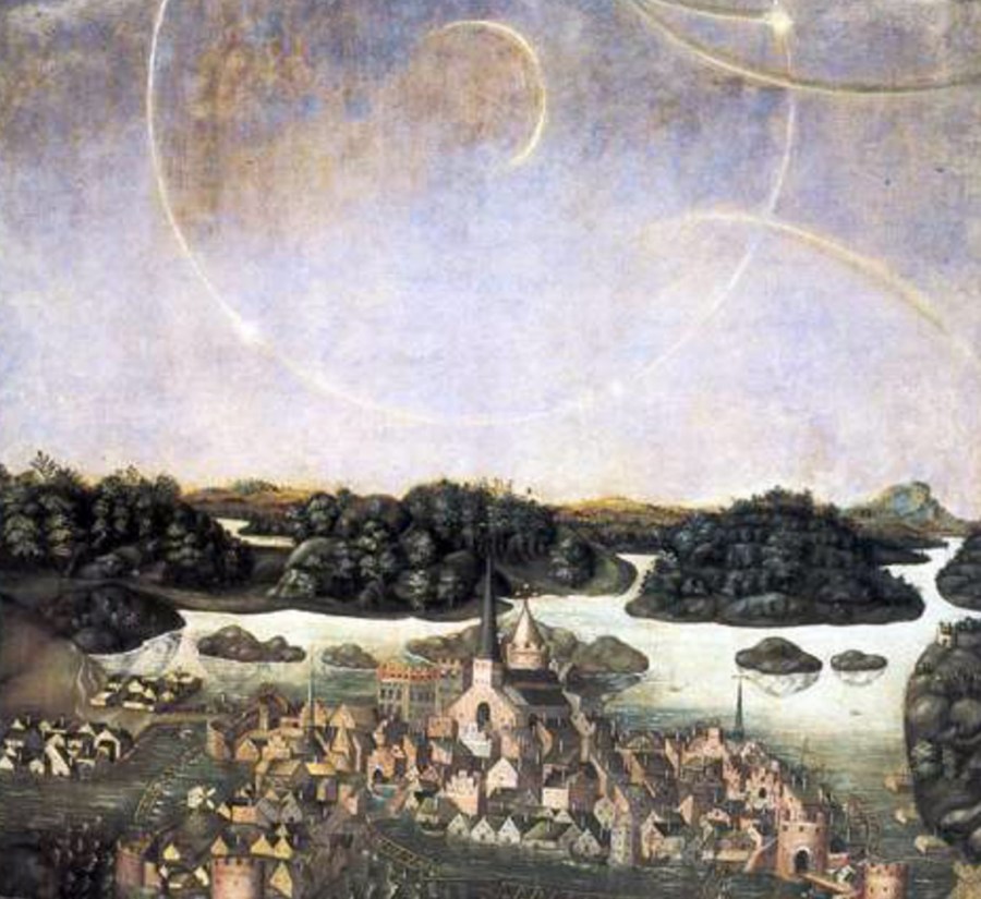 1535 — O fenômeno óptico atmosférico do halo é observado sobre Estocolmo e retratado na famosa pintura Vädersolstavlan.
