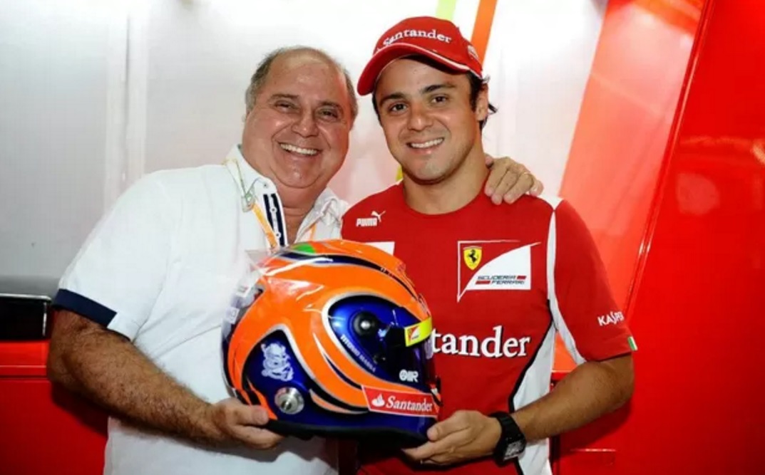 Titônio Massa recebe homenagem do filho Felipe Massa nas cores do capacete.