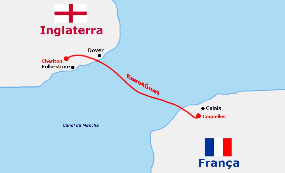 1994 – Inauguração do Eurotúnel no Canal da Mancha. O Eurotúnel (em inglês: Channel Tunnel; em francês: Tunnel sous la Manche)[1][2] é um túnel ferroviário de 50,5 quilômetros de extensão que liga Folkestone, Kent, no Reino Unido, com Coquelles, em Pas-de-Calais, perto de Calais, no norte da França, sob o Canal da Mancha no Estreito de Dover. No seu ponto mais baixo, atinge 75 metros de profundidade.[3][4]