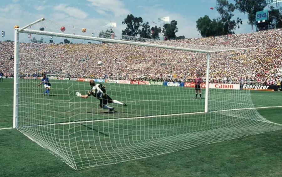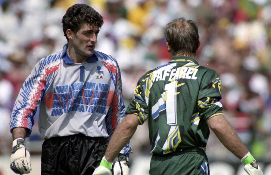 Cláudio Taffarel, ex-goleiro brasileiro e Gianluca Pagliuca, da Itália, nos pênaltis da final de 1994.