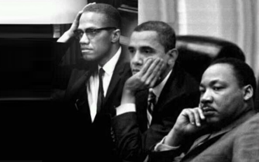 Malcolm X, Barack Obama e Martin Luther King – fotomontagem.
