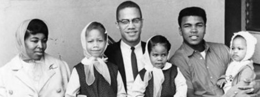 Malcolm X com esposa, filhos e Muhammad Ali.