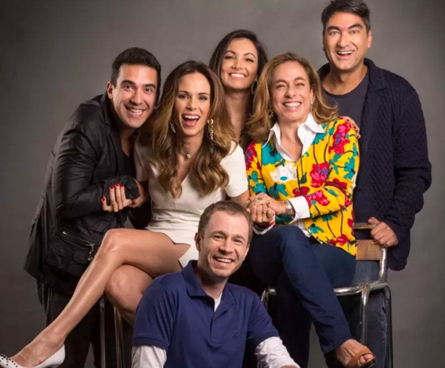 Tiago Leifert com os presentadores do ‘É de Casa’, André Marques, Ana Furtado, Patrícia Poeta, Cissa Guimarães e Zeca Camargo.