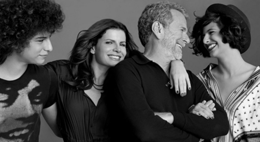 Debora Bloch com o pai Jonas Bloch e os filhos Júlia e Hugo.