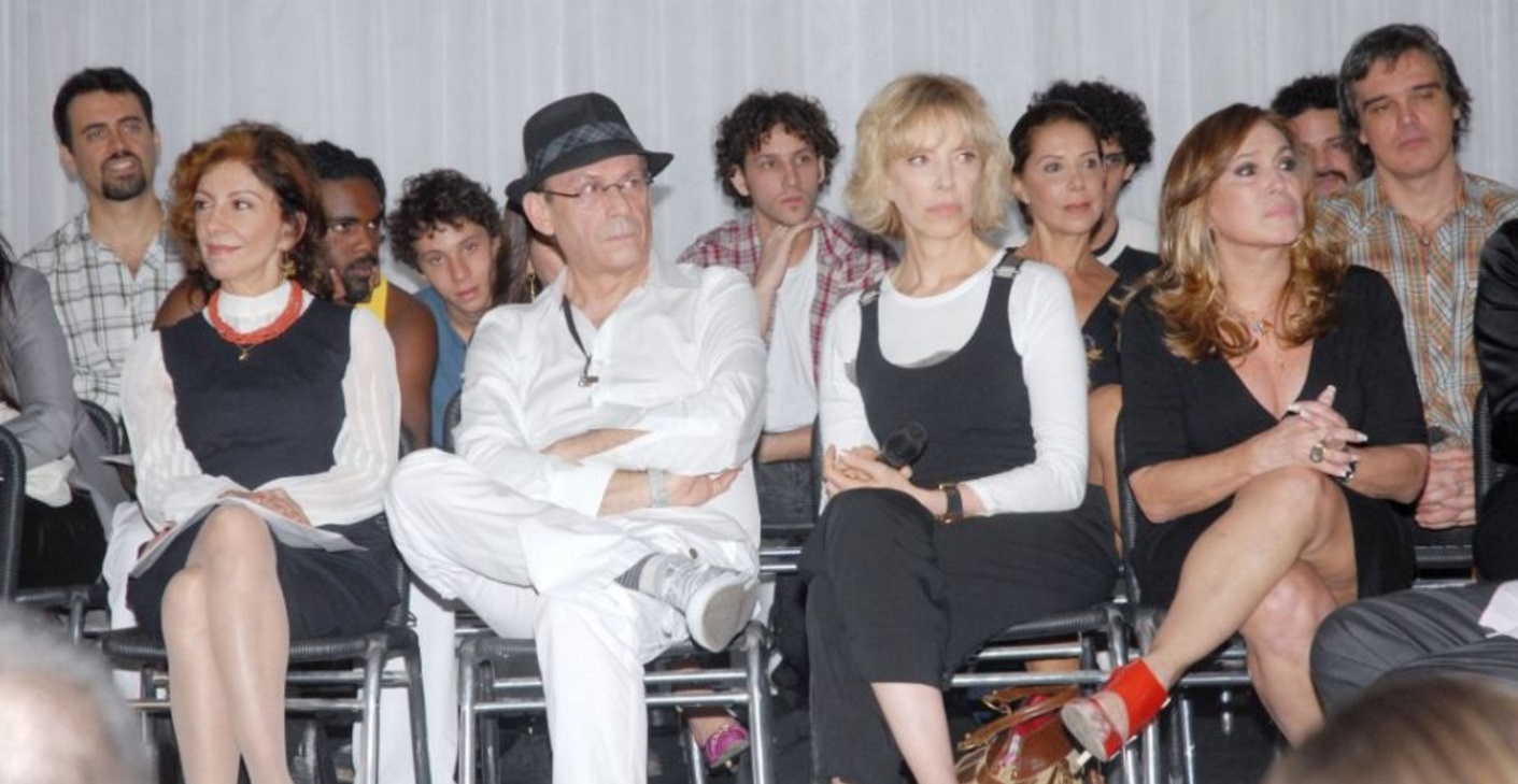 Marília Pera, José Wilker, Marília Gabriela, Ângela Vieira, Suzana Vieira e Dalton Vigh durante a apresentação do elenco do seriado ‘Cinquentinha’.