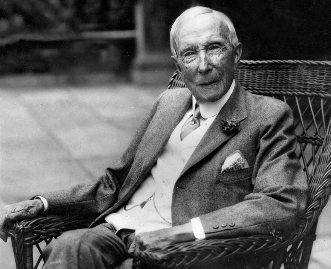 1839 – John Davison Rockefeller ▒ John Davison Rockefeller (Richford, 8 de julho de 1839 – Ormond Beach, 23 de maio de 1937) foi um investidor e empresário norte-americano. Rockefeller revolucionou o setor do petróleo. Em 1870, fundou a Standard Oil Company e a comandou agressivamente até sua aposentadoria oficial em 1897[1]. Ajustando sua fortuna da época à inflação, é o homem mais rico da história, com cerca de 663 bilhões de dólares em 2015 (2.519.4 trilhões de reais – cotação do dólar em 10 de novembro de 2015)[2] [3][4][5][6].