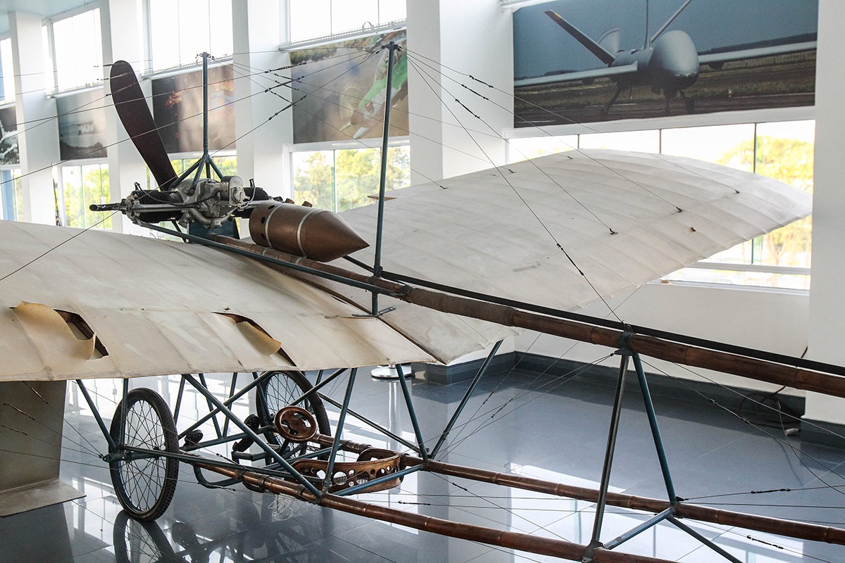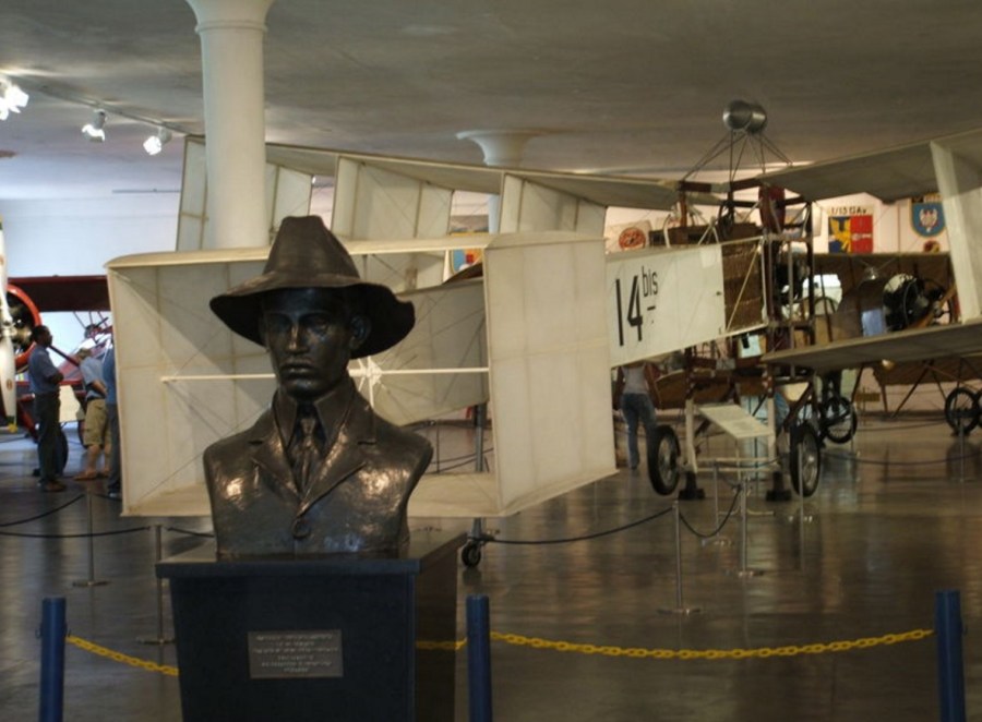Busto de Santos-Dumont e réplica do 14-bis no Museu Aeroespacial.