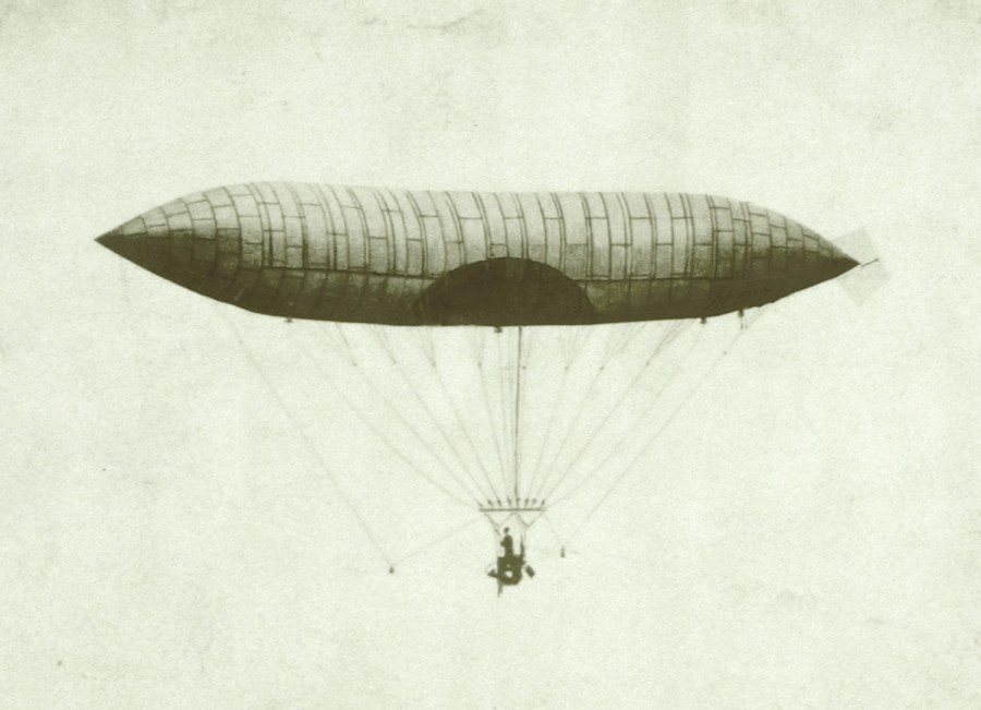 Ansiava por poder controlar o voo, e para isso desenhou uma série de balões alongados dotados de lemes e motores a gasolina.