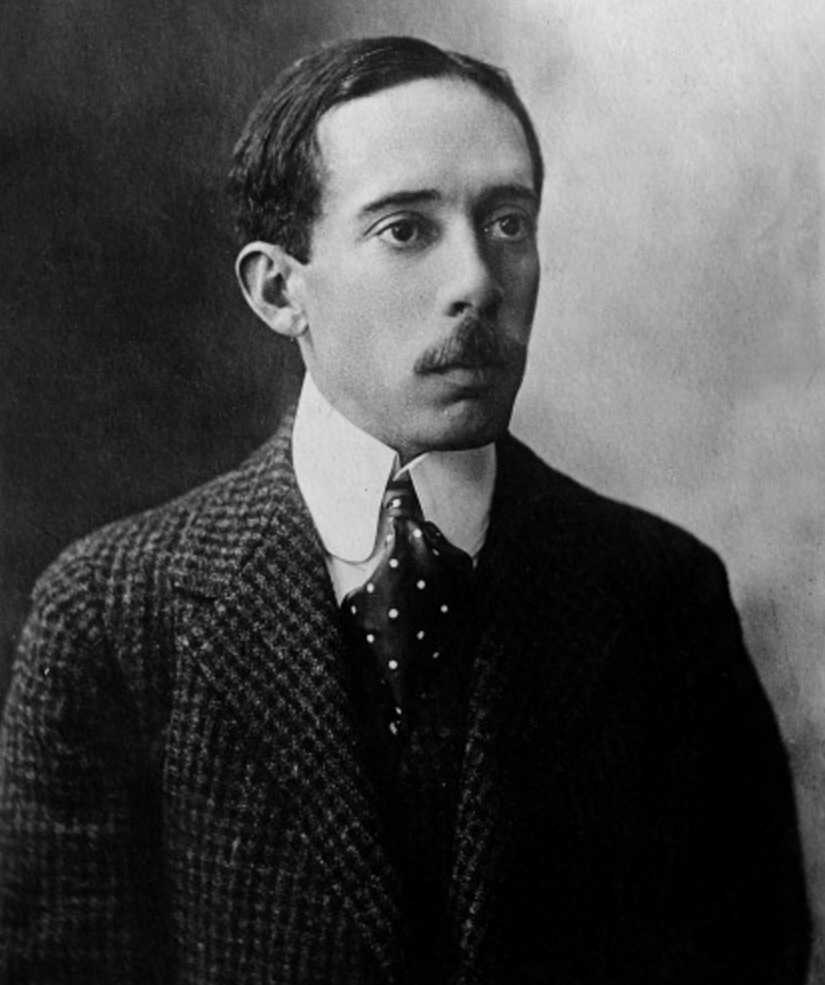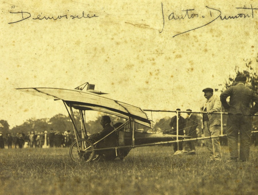 Santos Dumont também foi o primeiro a decolar a bordo de um avião impulsionado por um motor a gasolina.