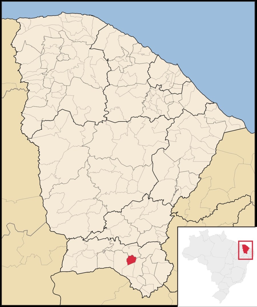Localiza-se na Região Metropolitana do Cariri,[6] no sul do estado, distante 491 km da capital, Fortaleza, [2] a uma altitude de 377 metros acima do nível do mar.[7] Ocupa uma área de 249 km².