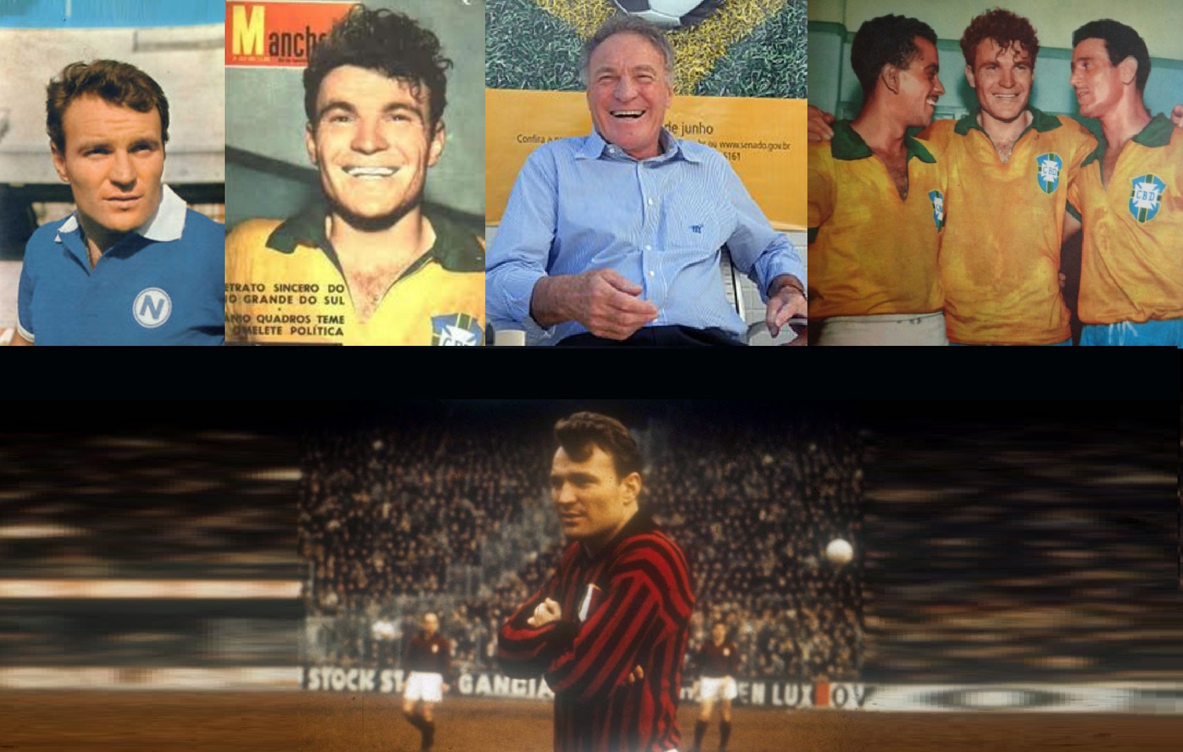 1938 — Mazzola ▒ José João Altafini, mais conhecido no Brasil como Mazzola (Piracicaba, 24 de julho de 1938) é um ex-futebolista ítalo-brasileiro, campeão do mundial com a Seleção Brasileira em 1958. Disputou apenas os dois primeiros jogos da Copa do Mundo de 1958 — depois acabou dando lugar ao estreante Pelé.