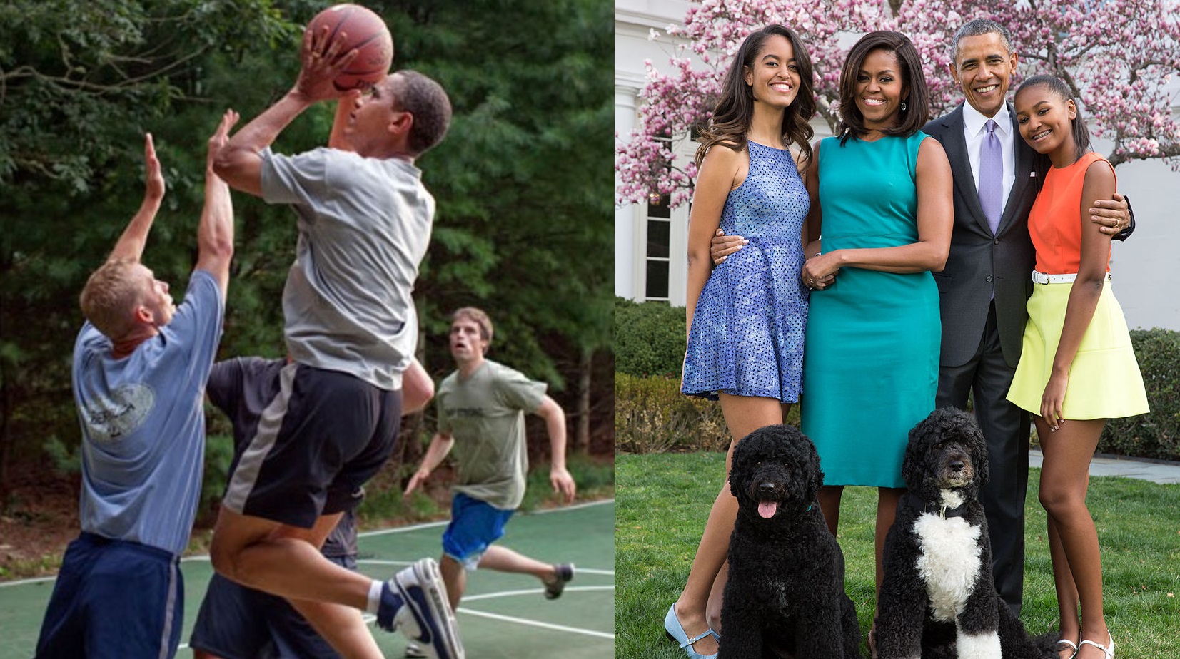Ele joga basquete, um esporte que praticou durante seus anos escolares, quando foi membro do time da escola;[367]Obama é canhoto.[368]