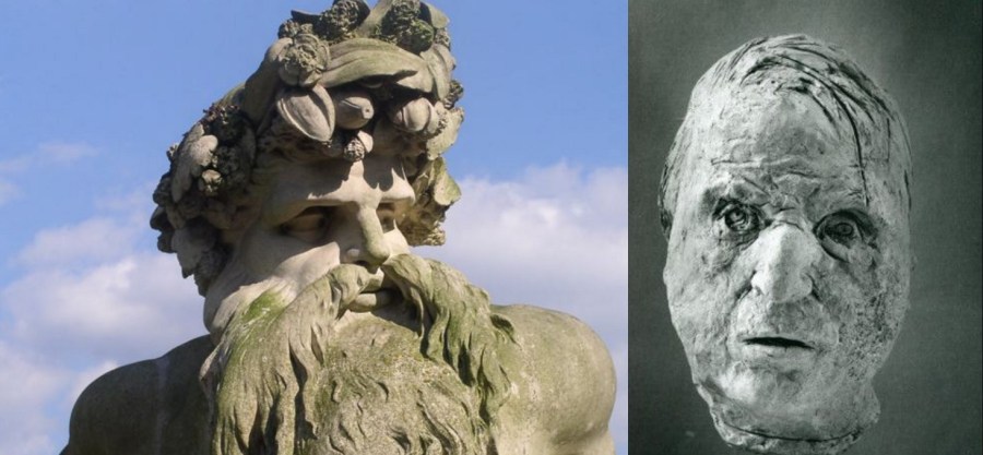 4 de Agosto – Á esquerda, escultura de John Bacon, Pai Tâmisa, em pedra de Coade, nos jardins da Ham House. Á direita, máscara com o rosto de Bacon. – Abaixo, Estátua de Atlas no observatório Radcliffe, Oxford. — John Bacon, 1799, escultor britânico (n. 1740).