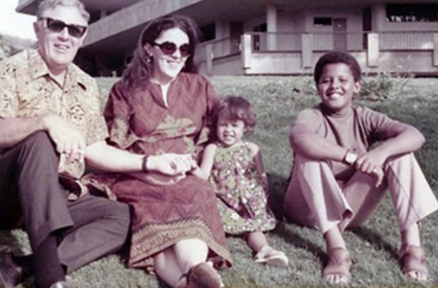 Barack Obama – 1961 – 56 Anos em 2017 – Acontecimentos do Dia – Com sua meia-irmã, Maya Soetoro-Ng, sua mãe, Ann Dunham, e o avô, Stanley Dunham, em Honolulu, Havaí.