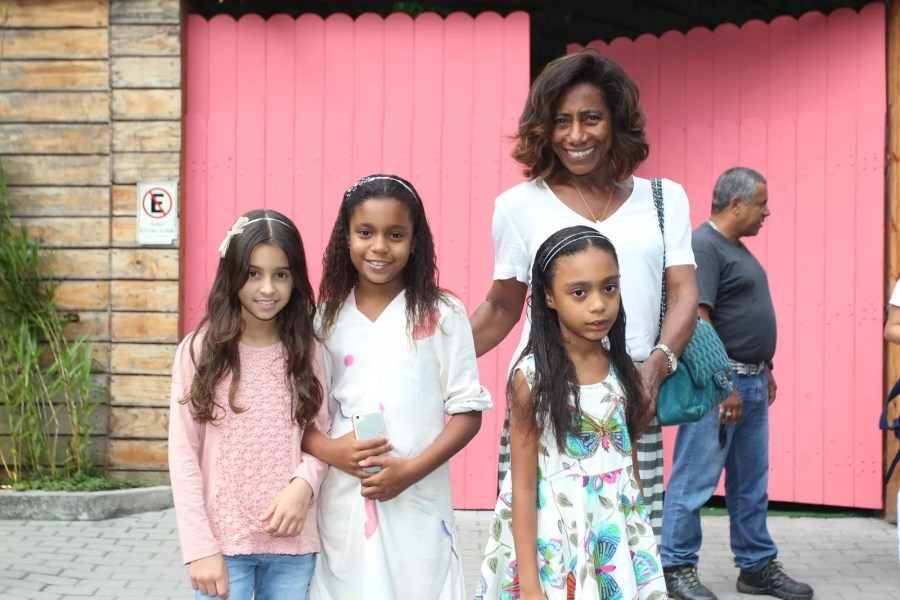 15 de Agosto – Glória Maria – 1949 – 68 Anos em 2017 – Acontecimentos do Dia – Com as filhas, Laura e Maria, e uma colega delas.