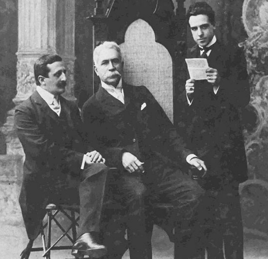 Graça Aranha, Joaquim Nabuco e Magalhães de Azeredo (à partir da esq.) em Roma, em 1904. Acervo da Fundação Joaquim Nabuco.