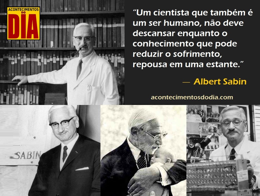 26 de Agosto — Albert Sabin – 1906 – 111 Anos em 2017 – Acontecimentos do Dia – Sabin vacinando crianças com suas ‘gotinhas’.
