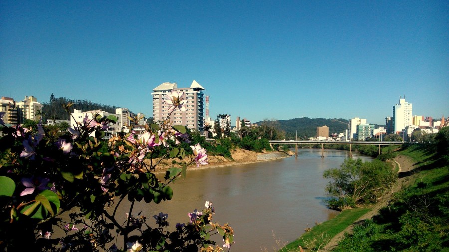 2 de Setembro – Centro da cidade visto da confluência do Ribeirão Garcia com o Rio Itajaí-Açu — Blumenau (SC) — 167 Anos em 2017.