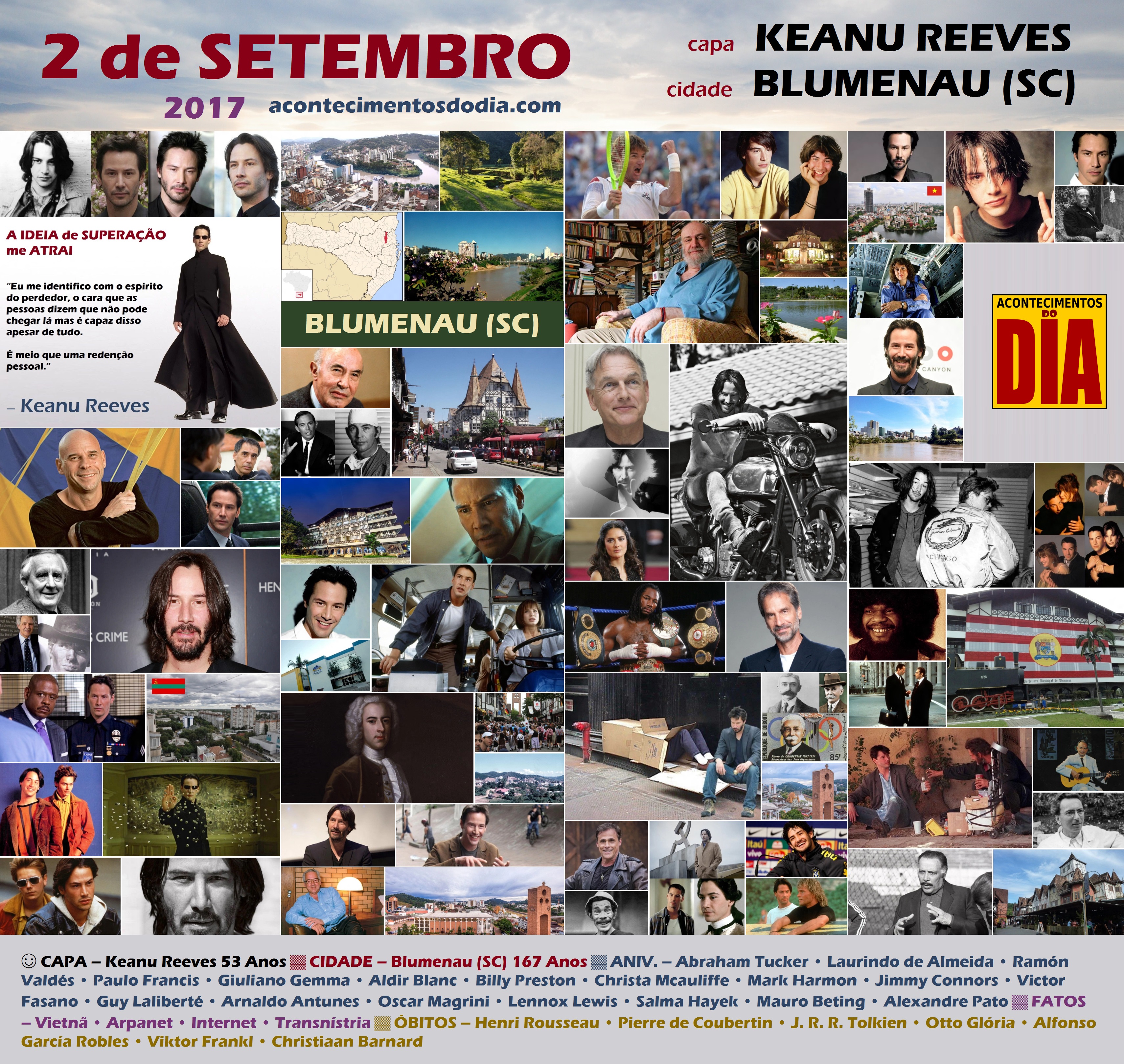 2 de Setembro – Keanu Reeves – 1964 – 53 Anos em 2017 – Acontecimentos do Dia – Matrix.