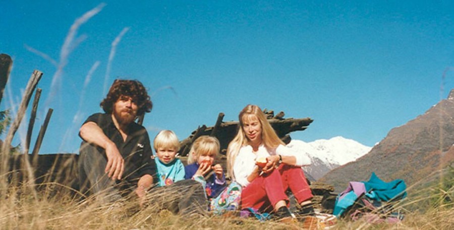 17 de Setembro – Reinhold Messner – 1944 – 73 Anos em 2017 – Acontecimentos do Dia – Reinhold Messner com a esposa Sabine e filhos, Magdalena e Simon, em 1993.