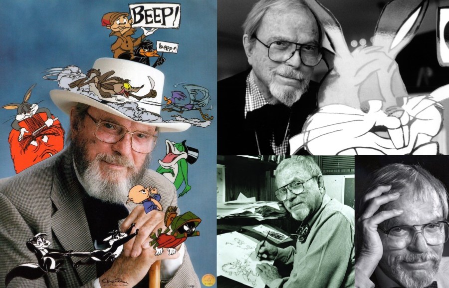 1912 – Chuck Jones ▒ Charles Martin “Chuck” Jones (Spokane, 21 de setembro de 1912 — Corona Del Mar, 22 de fevereiro de 2002) foi um animador, diretor cinematográfico, produtor, roteirista e cartunista estadunidense, mais memorável pelo seu trabalho nos curta-metragens das séries Looney Tunes e Merrie Melodies no estúdio Warner Bros. Cartoons. Chuck trabalhou com várias personagens, tais como, Pernalonga, Patolino, Pepe le Pew e ainda criou o Papá-Leguas e o Coiote.