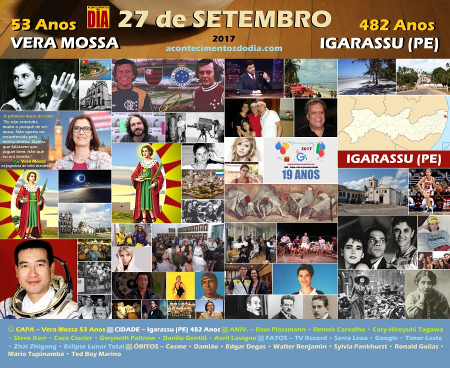 27 de Setembro – Vera Mossa – 1964 – 53 Anos em 2017 – Acontecimentos do Dia – Olimpíadas do Rio 2016.