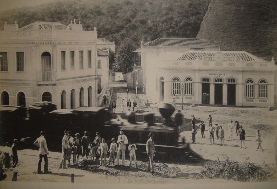 30 de Setembro – Maria Fumaça chegando a Viçosa, 1925. Ao fundo observa-se o Grande Hotel, que mais tarde se tornou o Hotel Rubim — Viçosa (MG) — 146 Anos em 2017.