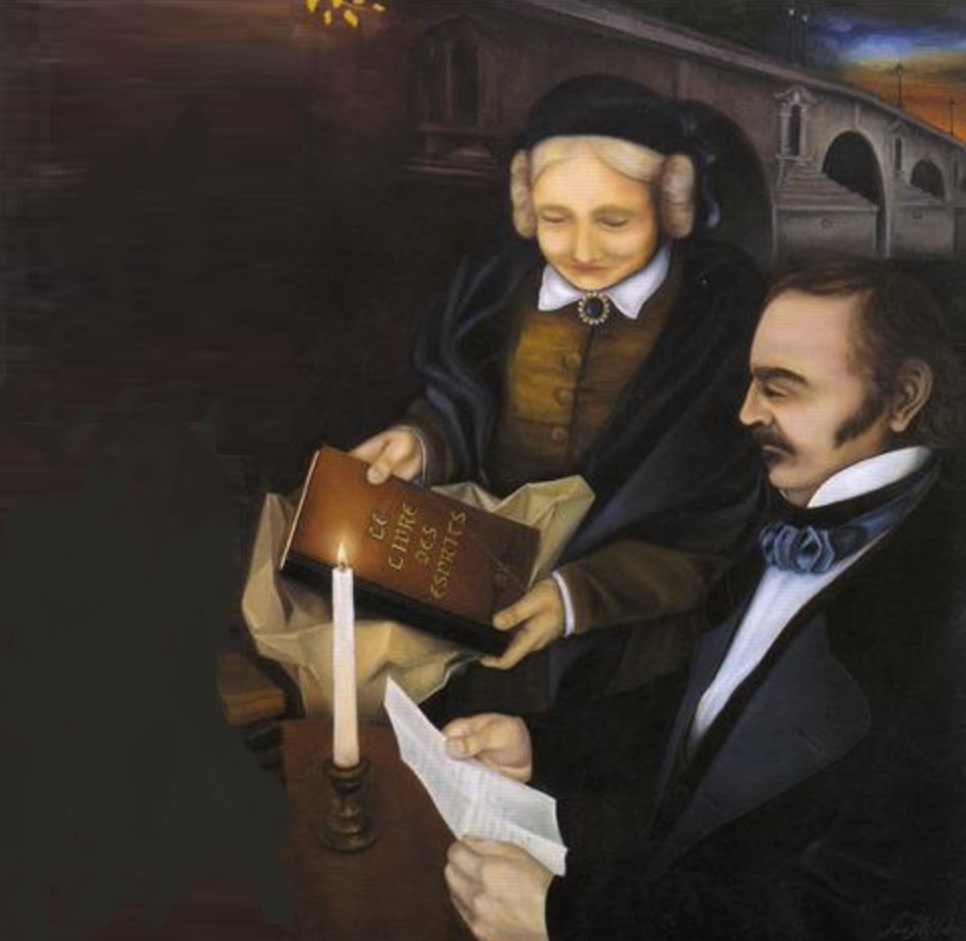 Durante este período, também tomou conhecimento do fenômeno da escrita mediúnica – ou psicografia, e assim passou a se comunicar com os espíritos. Um desses espíritos, conhecido como um “espírito familiar”, passa a orientar os seus trabalhos. Mais tarde, este espírito lhe informa que já o conhecia do tempo das Gálias, com o nome de Allan Kardec. Assim, Rivail passa a adotar este pseudônimo, sob o qual publicou as obras que sintetizam a Doutrina Espírita.[6]