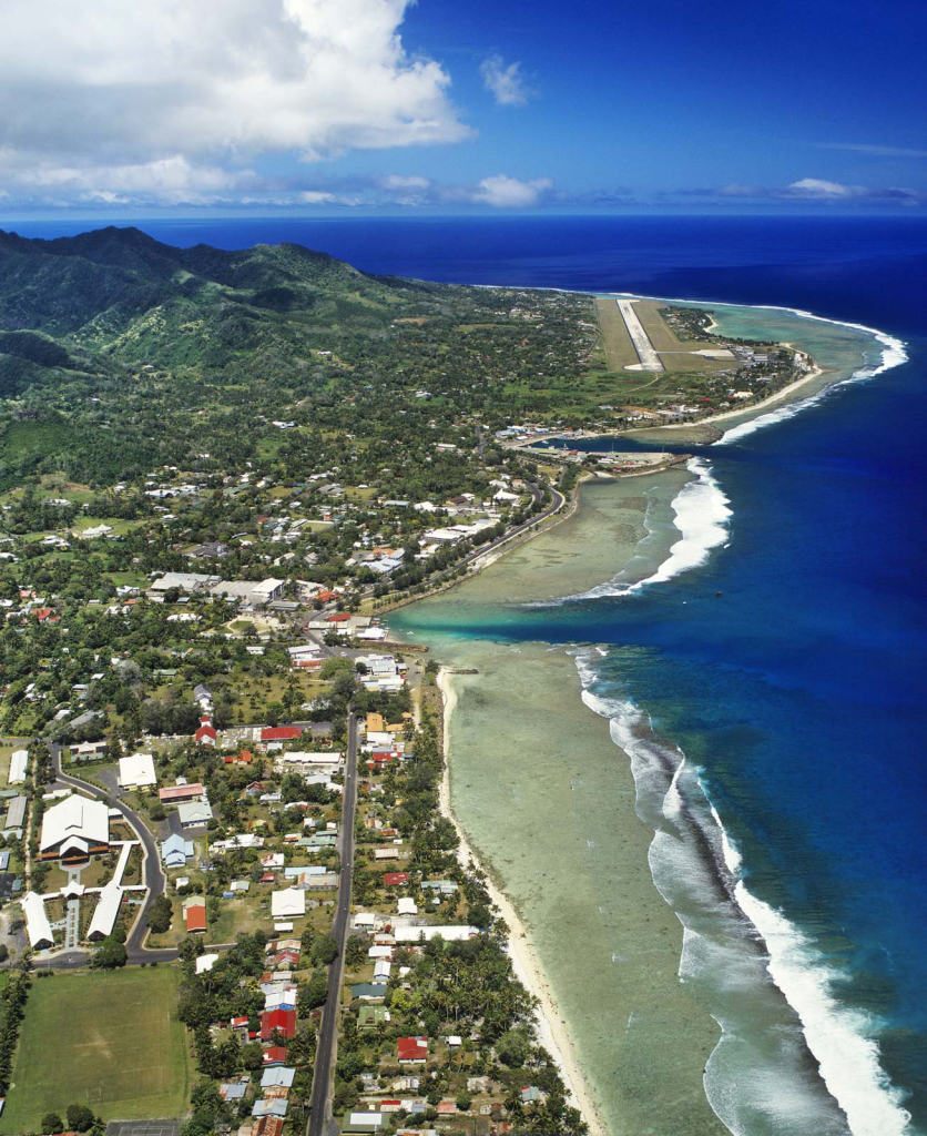 A capital Avarua fica na maior ilha, Rarotonga (67 km²). No final do século passado e início deste século, a ilha, em média a cada cinco anos, tem sofrido secas gravíssimas.