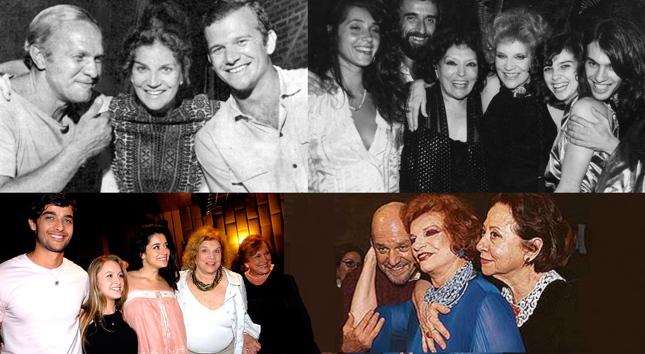 Tônia Carrero em fotomontagem com atores e o filho Cecil Thiré. Entre os amigos presentes, estão: Jardel Filho, Christiane Torloni, Bibi Ferreira, Lídia Brondi, Nicette Bruno, Fernanda Montenegro …