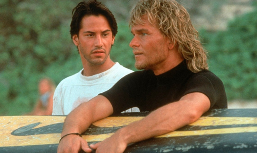 Keanu Reeves e Patrick Swayze, em ‘Caçadores de Emoções’, de 1991.