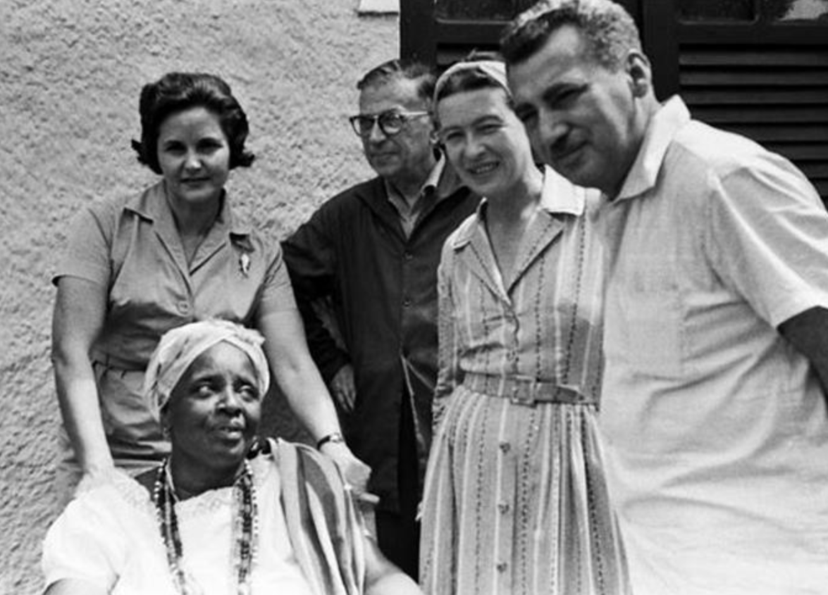 Zélia Gattai Amado, Jean-Paul Sartre, Simone de Beauvoir, Jorge Amado e Mãe Senhora, no Brasil.