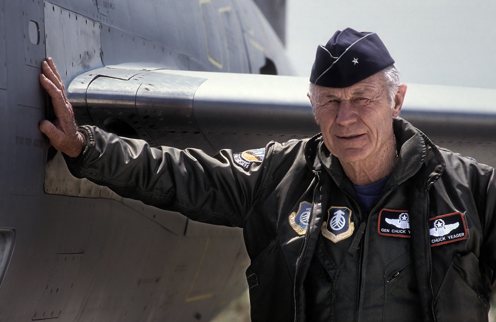 1923 — Charles Yeager ▒ Charles Elwood “Chuck” Yeager (Myra, 13 de fevereiro de 1923) é um ás da aviação estadunidense, conhecido por ser a primeira pessoa a “quebrar” a barreira do som.