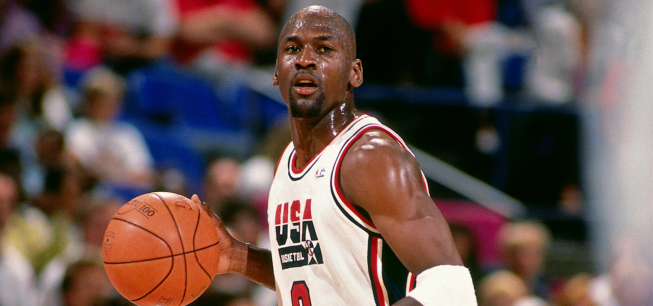 Pela Seleção Estadunidense, Jordan foi bicampeão dos Jogos Olímpicos.