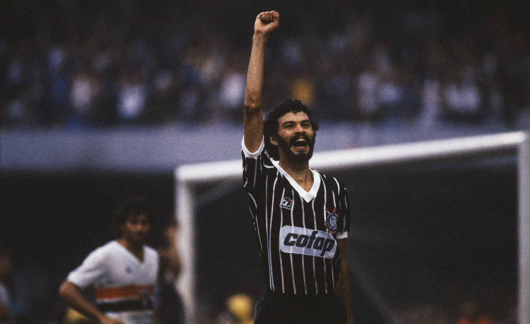 Sócrates disputou 297 jogos, marcou 172 gols e venceu três Campeonatos Paulistas (1979, 1982 e 1983) com a camisa do Timão, além de ter sido um dos principais idealizadores da Democracia Corinthiana.