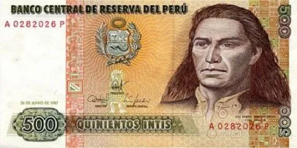 Túpac Amaru II homenageado na cédula peruana de 1970.