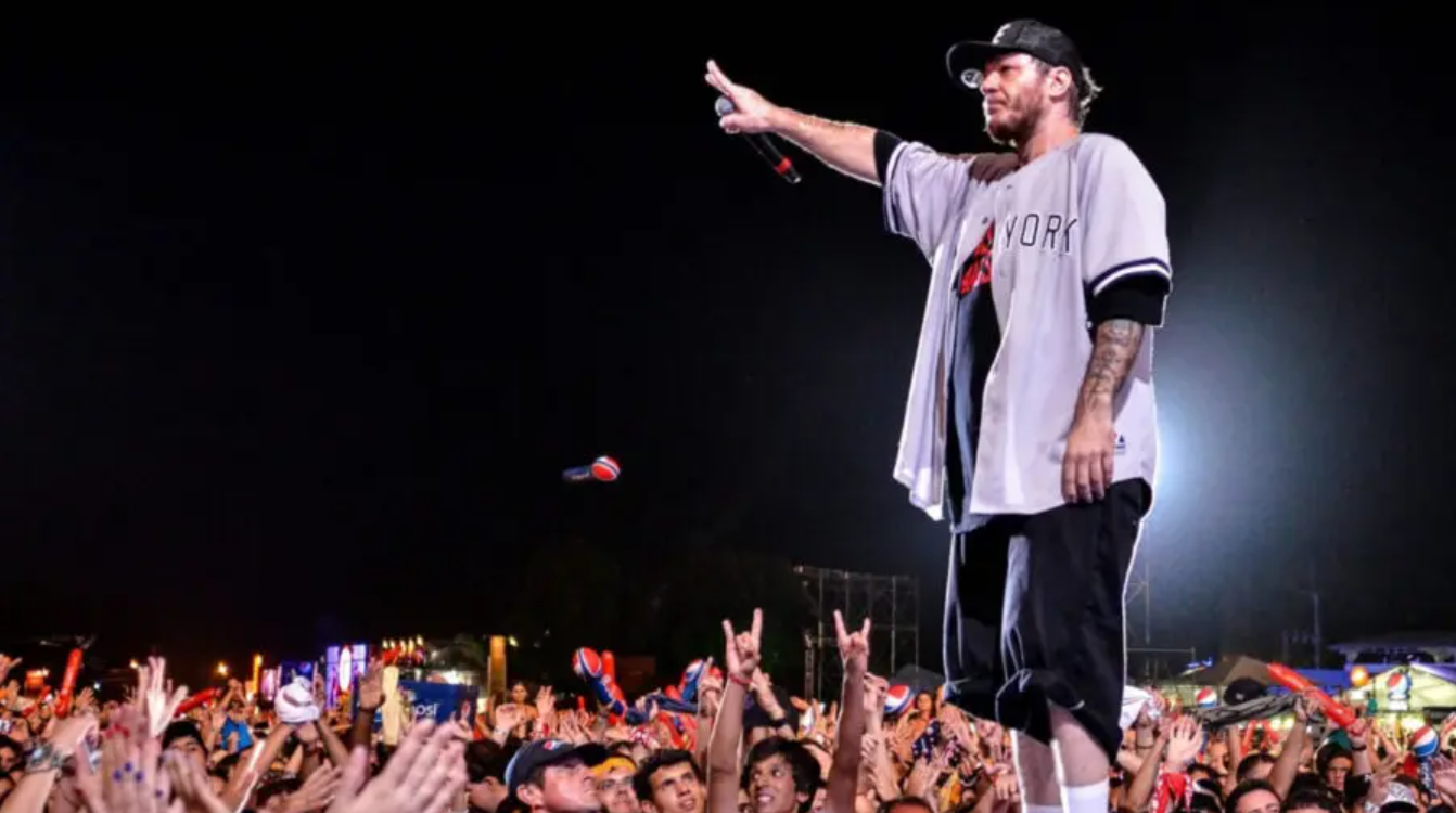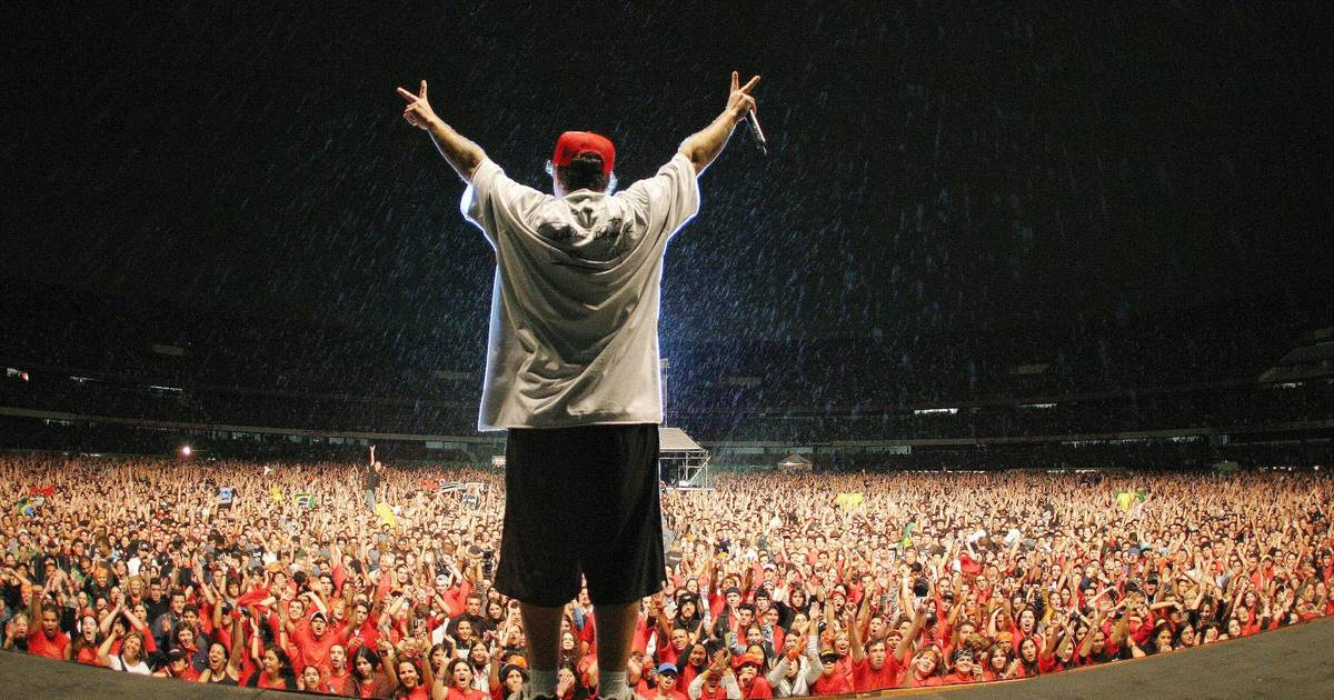 Com o microfone, Chorão cantou improvisadamente uma letra do Suicidal Tendencies.