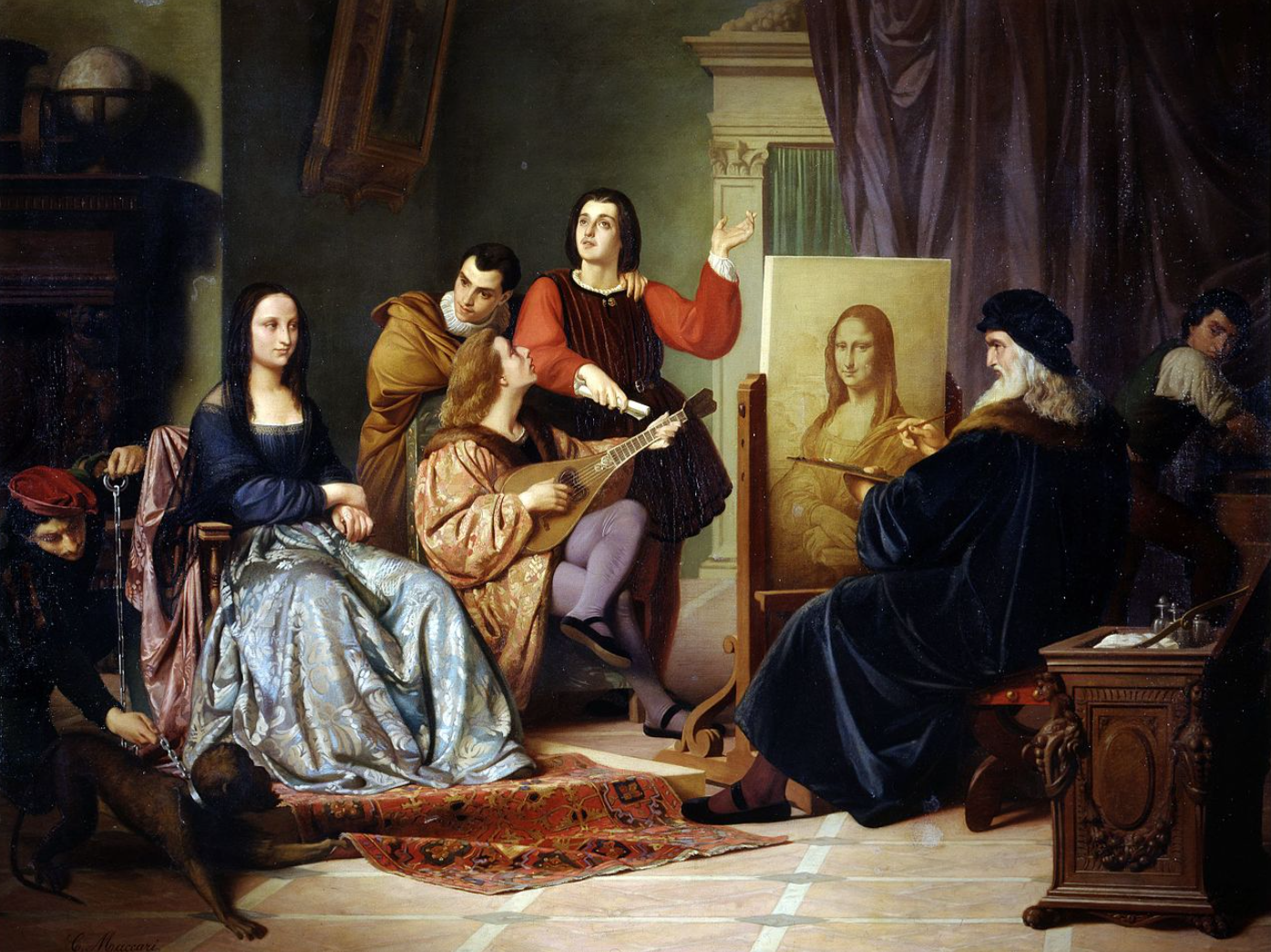 Leonardo da Vinci pintando a Mona Lisa.